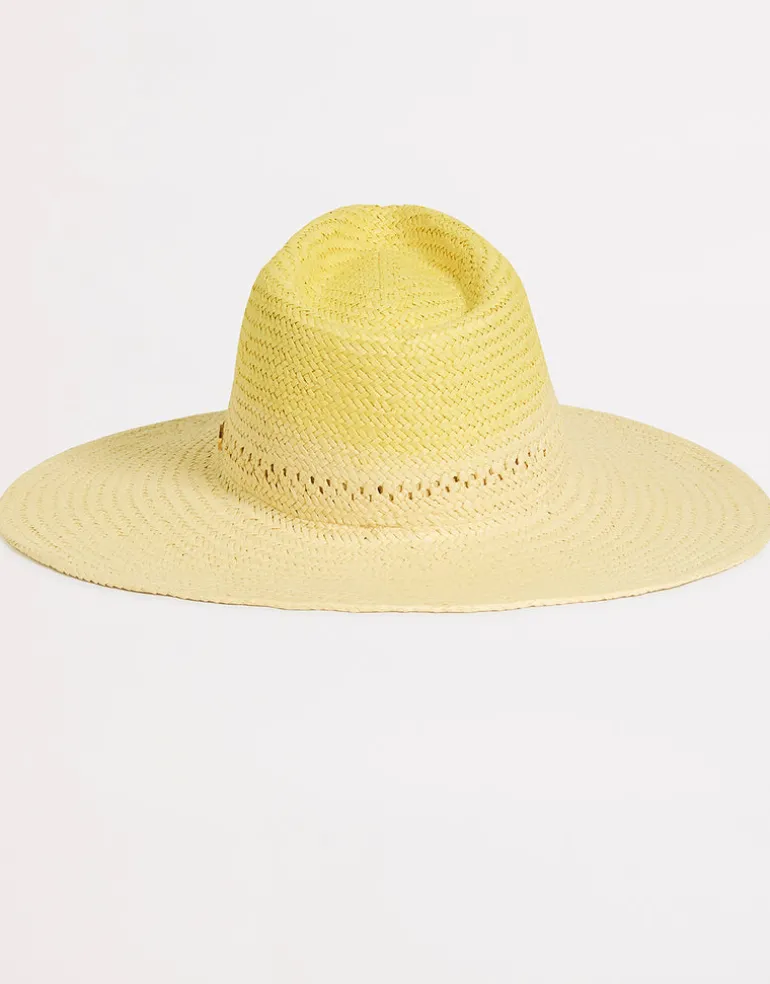 The Colour Crush Wide Brim hat from Seafolly is a lovely wide brim paper straw hat in natural colour but with a pale yellow crown.
