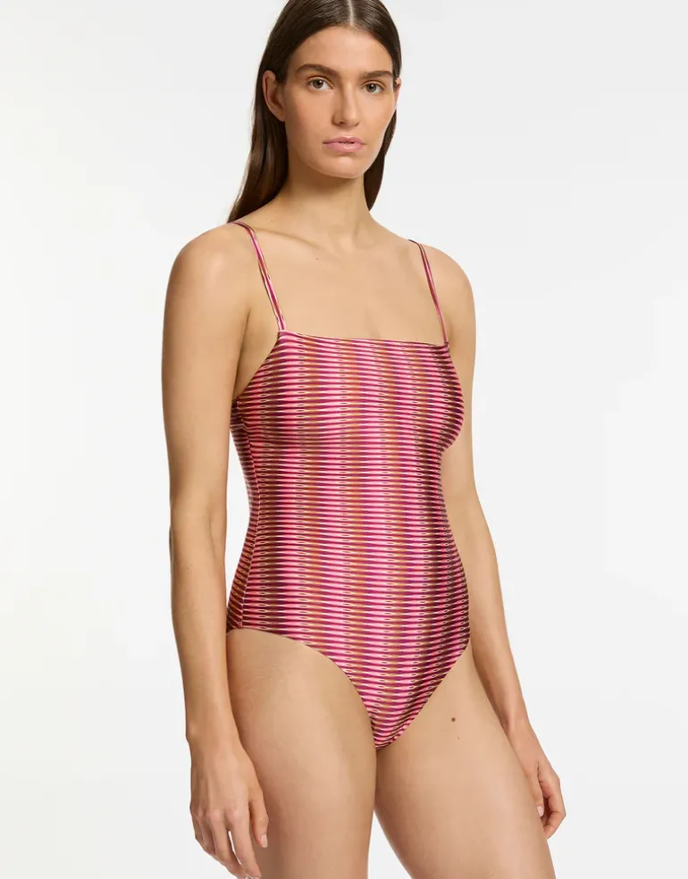 The Alessia Geo Minimal Tank swimsuit from Jets in this Italian inspired Geo print is a lovely tank style with a square neckline, narrow adjustable straps and removable cups.
