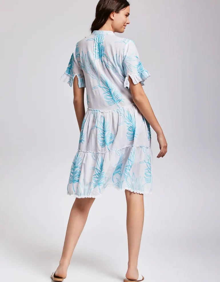 The Angie Short Sleeve dress from Iconique is crafted from pure cotton and is embroidered throughout. Its flare short sleeves and the A-line design make it an easy style that will keep you cool on the hottest days.
