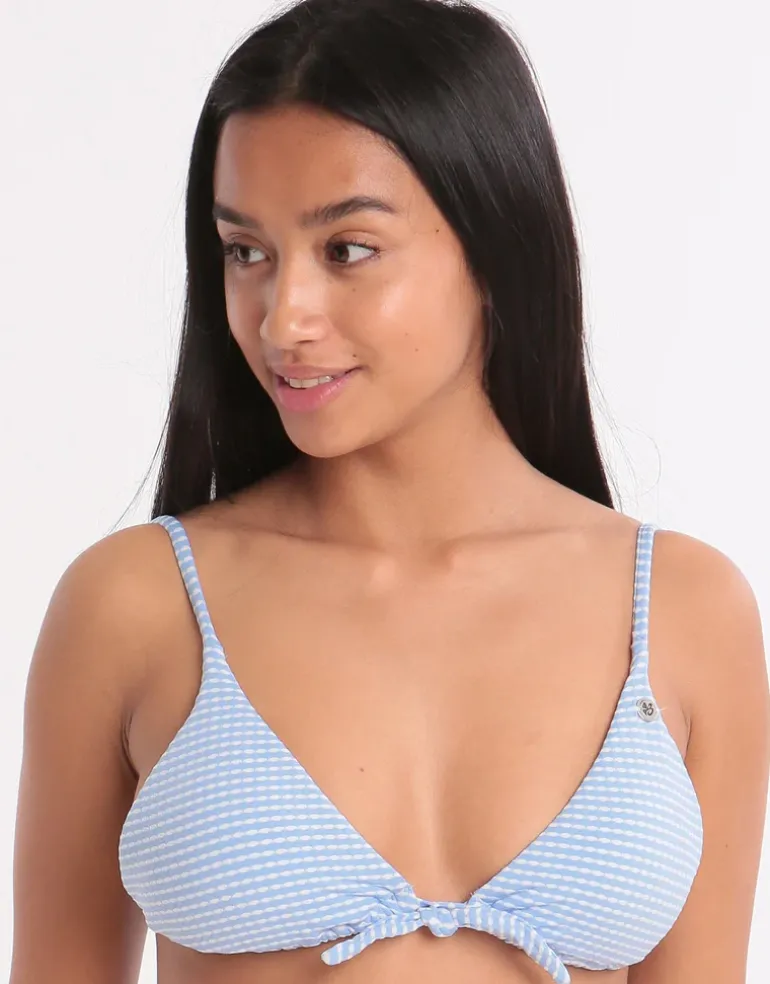 Soak up the summer sun in style wearing Banana Moon’s Bacci Cleo Tri Bikini Top in Sky.