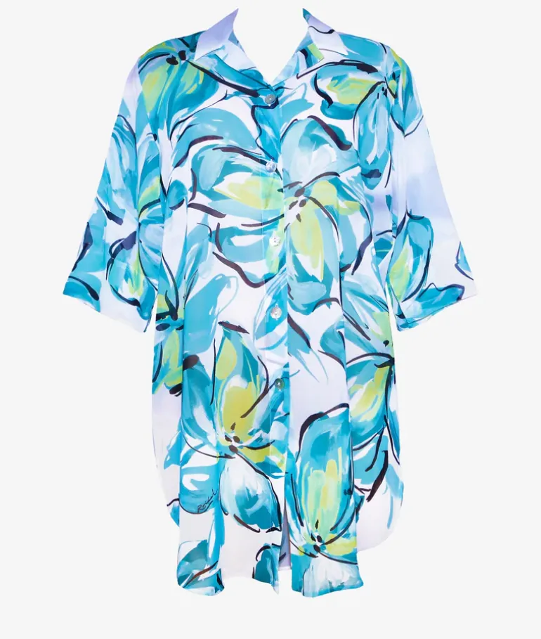 The beautiful Bali Beach Shirt from Roidal is a beautiful addition to any of the Bali swimwear styles. Mini-length and with loose three-quarter length sleeves, a collar and a button front.