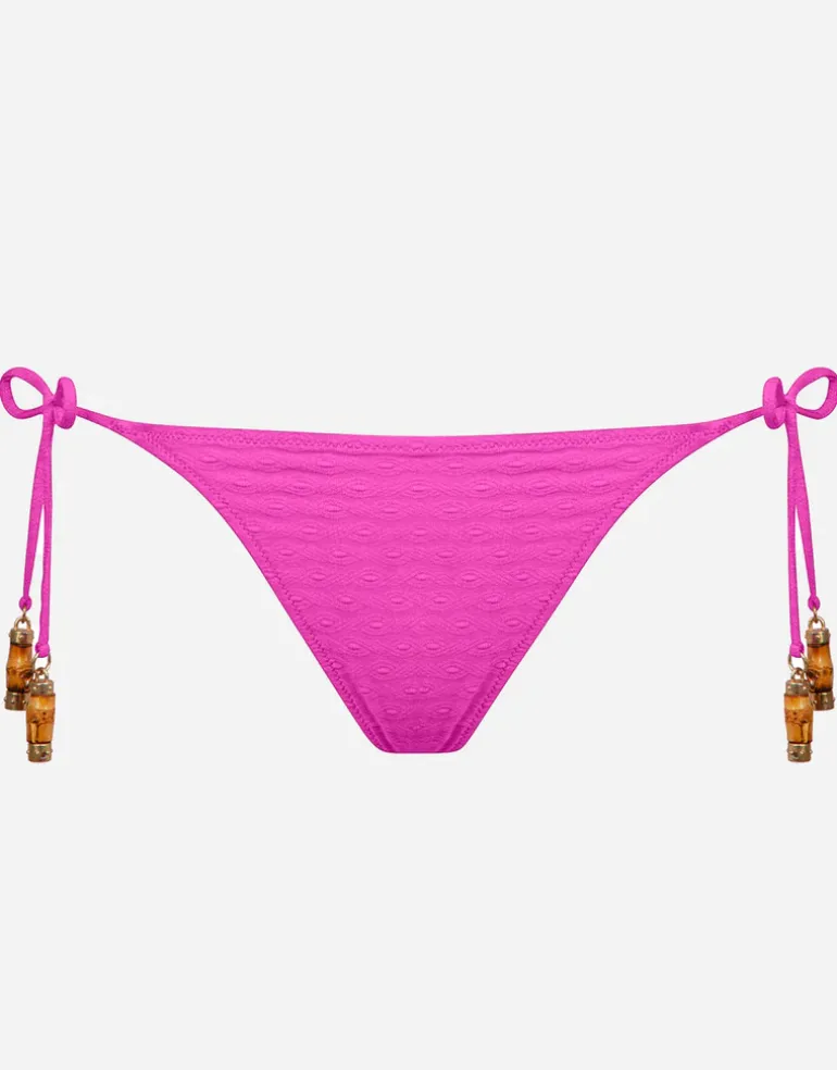 The Bamboo Solids range from Watercult is made from soft textured fabric in Intense Pink and features Bamboo detailing. This lovely tie side bikini pant has small to moderate rear coverage and is finished with bamboo detailing on the tie ends.