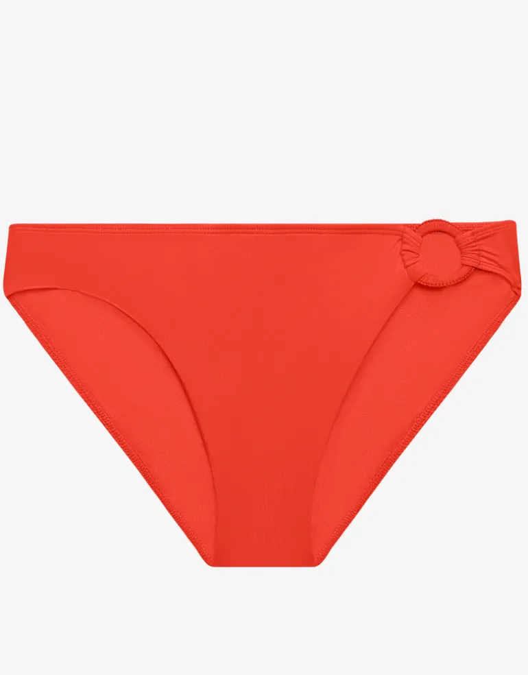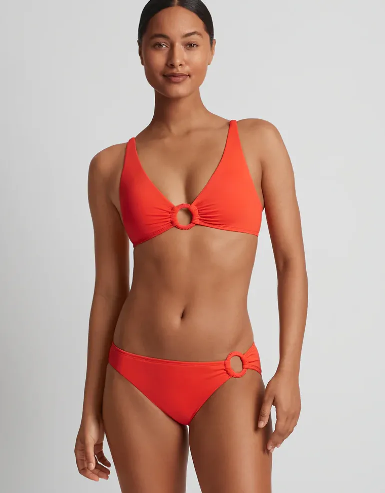 The Beach Club Solids Macrame Ring bikini pant from Lauren Ralph Lauren is a low rise, hipster pant with a fabric covered ring detail on one hip. With a modern leg offering full rear coverage.