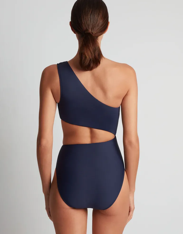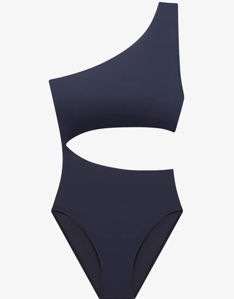 The Beach Club Solids One-Shoulder Cutout Swimsuit from Lauren Ralph Lauren is a chic and modern design featuring a sleek one-shoulder neckline and a stylish cut-out at the midsection. With a high-leg cut, shaping tummy control, and removable padded cups, this swimsuit flatters the figure while offering both comfort and support.