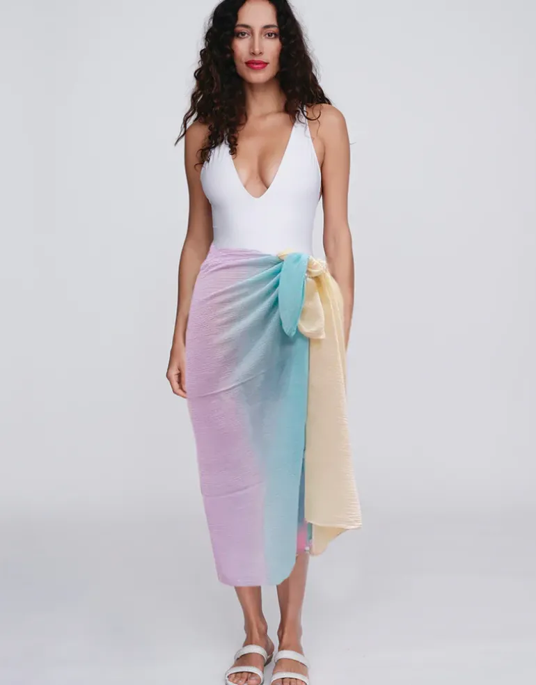 The Biarritz Sarong from Pia Rossini is a pretty pastel sarong to match the Biarritz beachwear range.