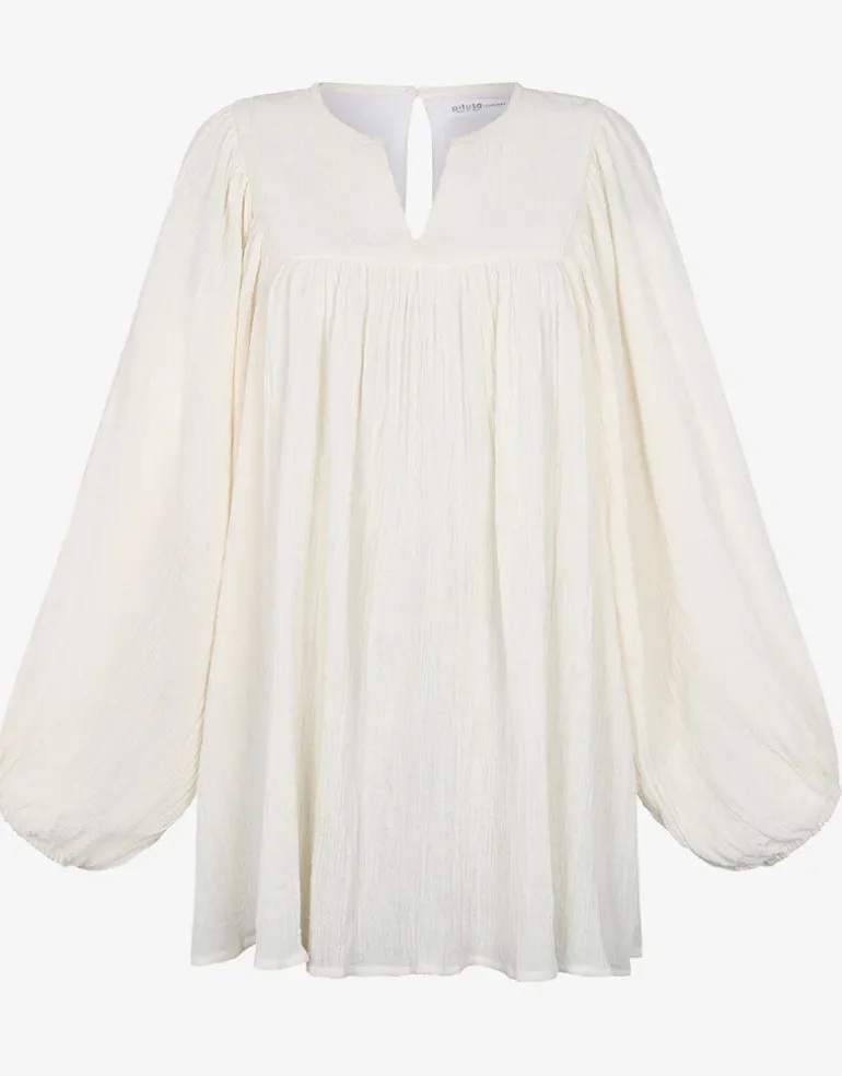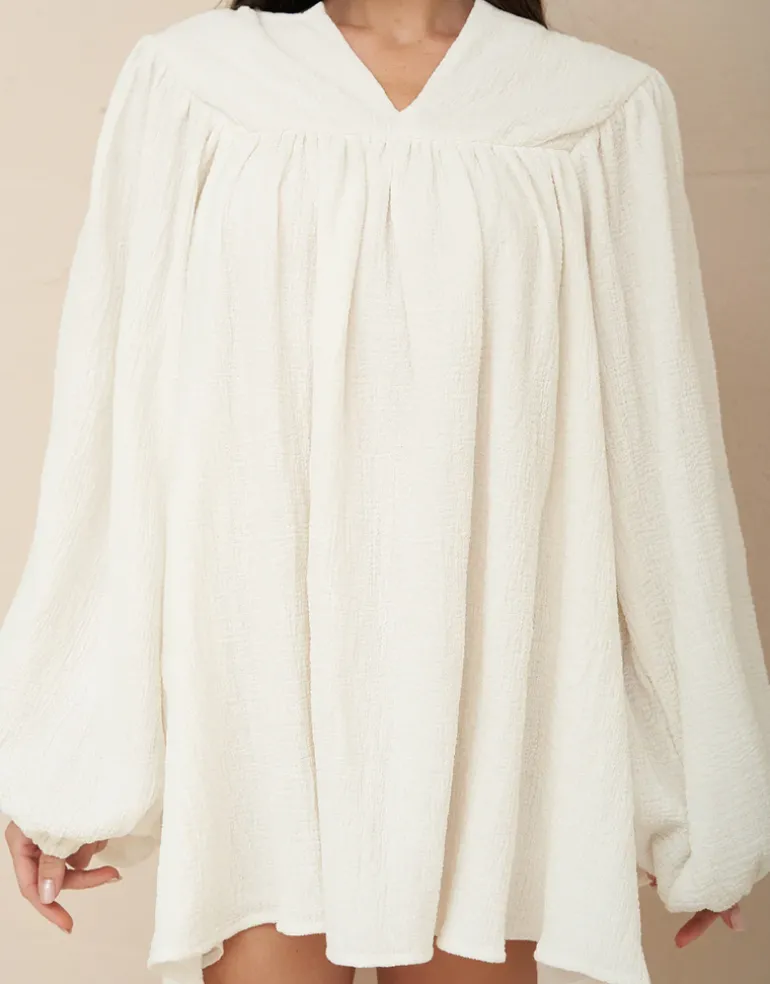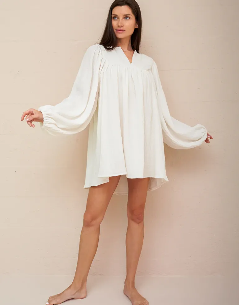 The Boho Sleeve Mini dress from Pitusa is a cute little crinkle cotton style in a loose fit with balloon sleeves and a slashed neckline.