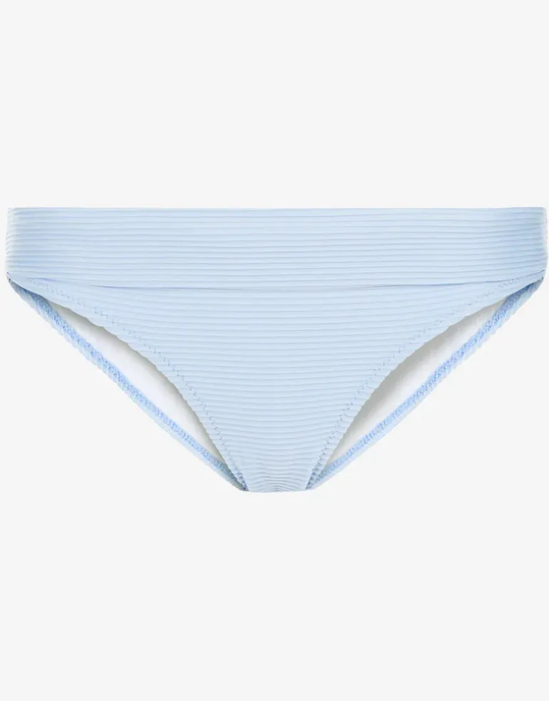 In a soft pearl-blue rib, these bikini bottoms offer a medium coverage with the fold over stitched at the side seam to secure the intended shape.