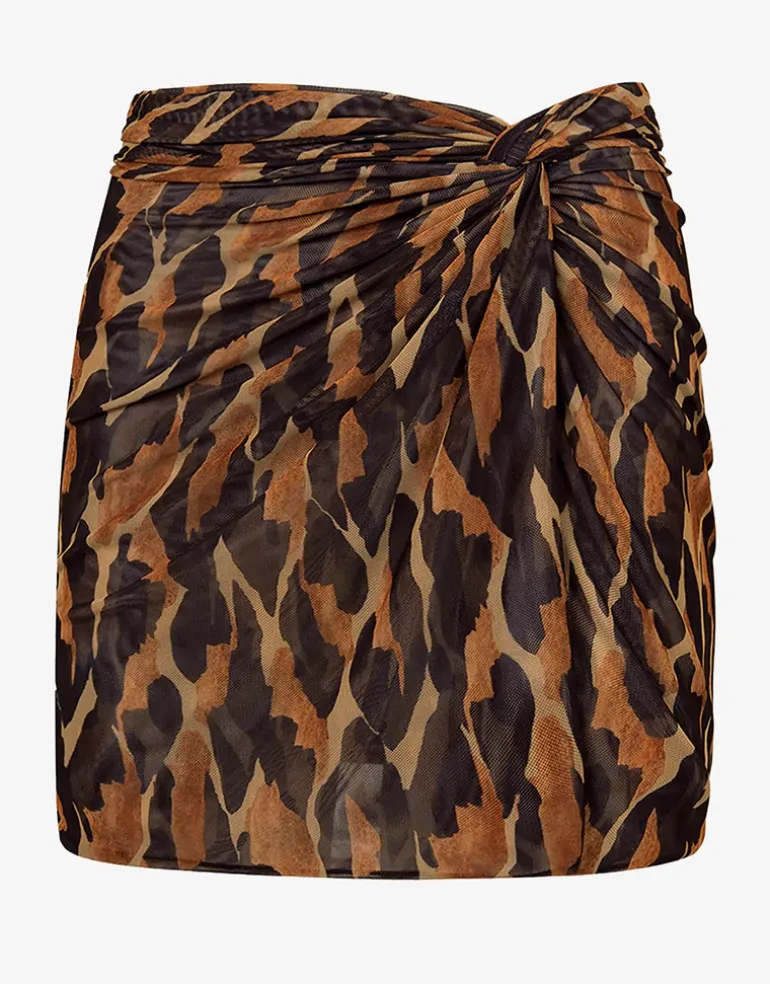 The Karen Mini Pareo Skirt from ViX in beautiful Camu print is your ultimate skirt cover-up, combining versatility and lightweight comfort to match the Camu swimwear. With its draped effect and gathered accent at the hip, the elastic waistband ensures a comfortable fit, while the super soft mesh fabric feels luxurious against your skin.