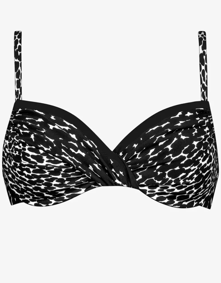 The Capture Underwired bikini top from Maryan Mehlhorn is a beautiful bikini top in black and white print with a twist detail at the front, narrow adjustable straps and a clip at the back.