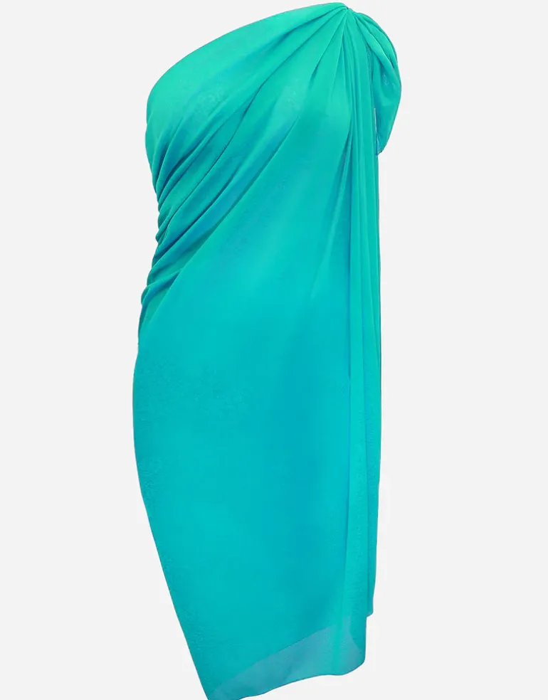 The Ceylan Sarong from Roidal is a solid Aqua blue style in stretch knit polyester and makes a beautiful cover-up for the Roidal swimwear.