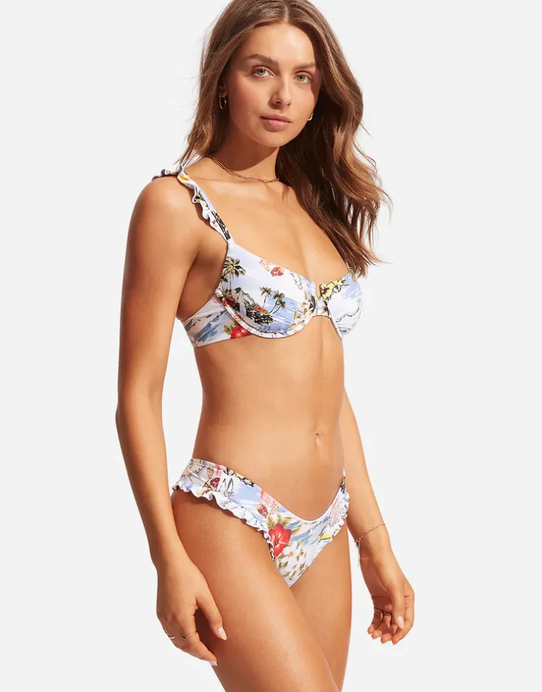 The Coast to Coast High Cut Rio bikini pant from Seafolly is a cute little style with frills at the leg openings and small rear coverage.