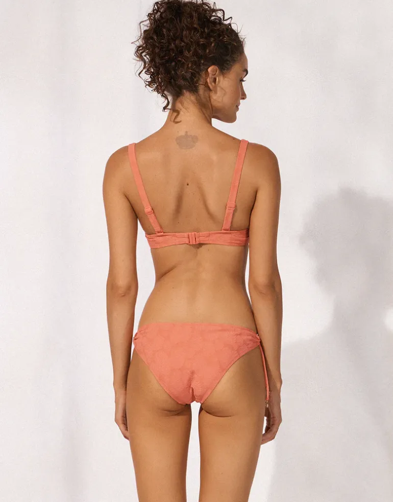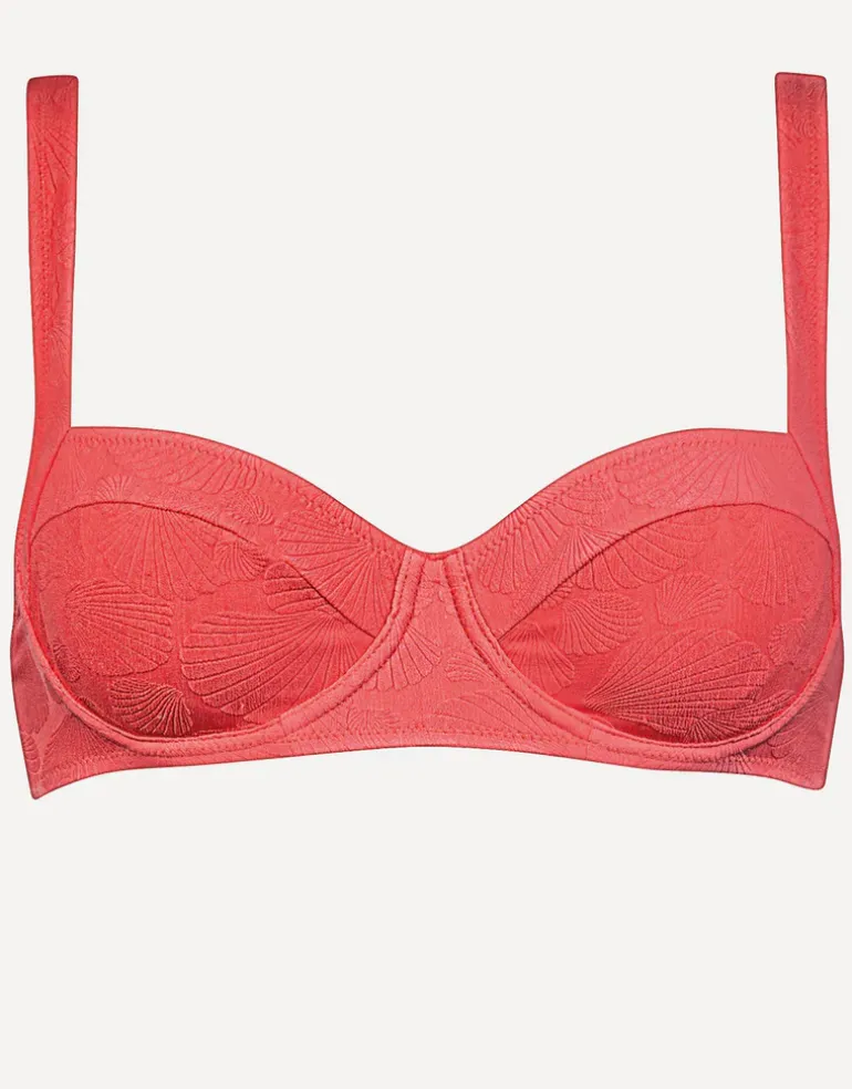 The Coastal Daydream Balconette bikini top from Watercult in bright coral red is a lovely balconette style with underwired cups and adjustable straps for great support.