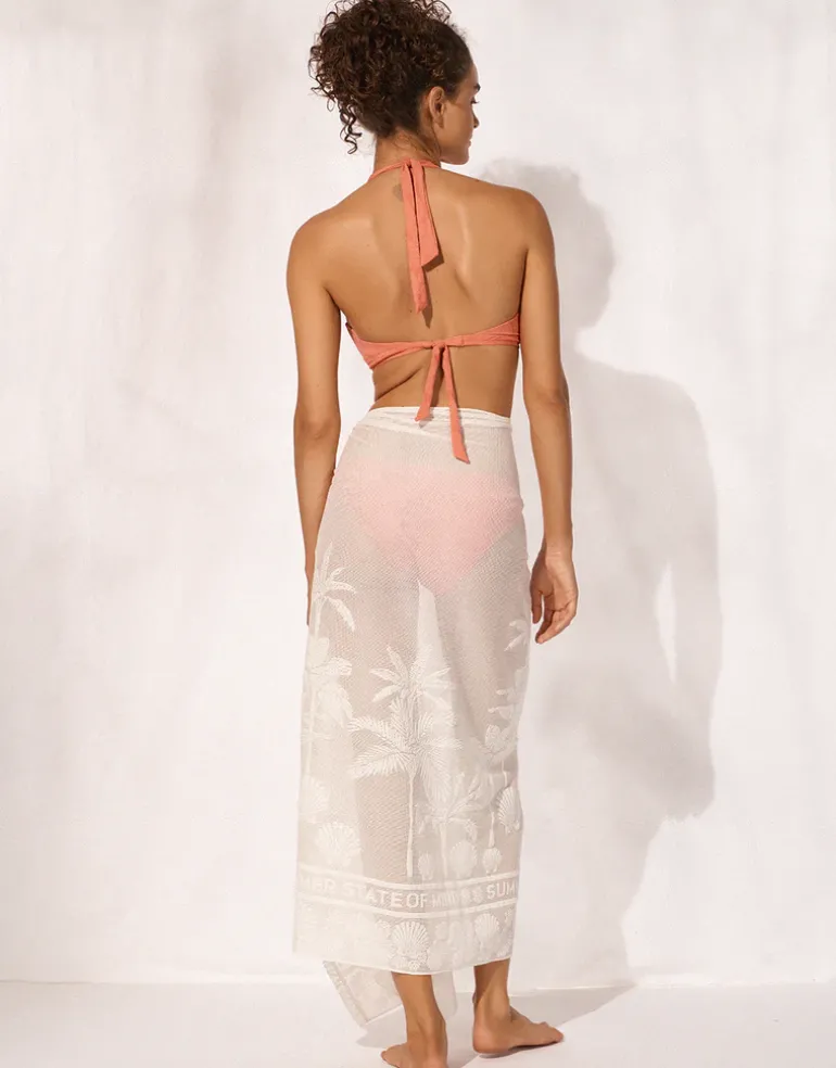 The Coastal Daydream Pareo from Watercult is a stunning sheer cover-up with a woven in coastal scene to pair with the Coastal Daydream range.