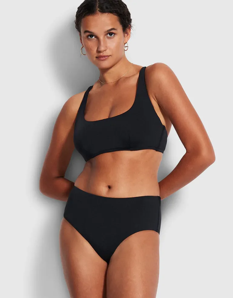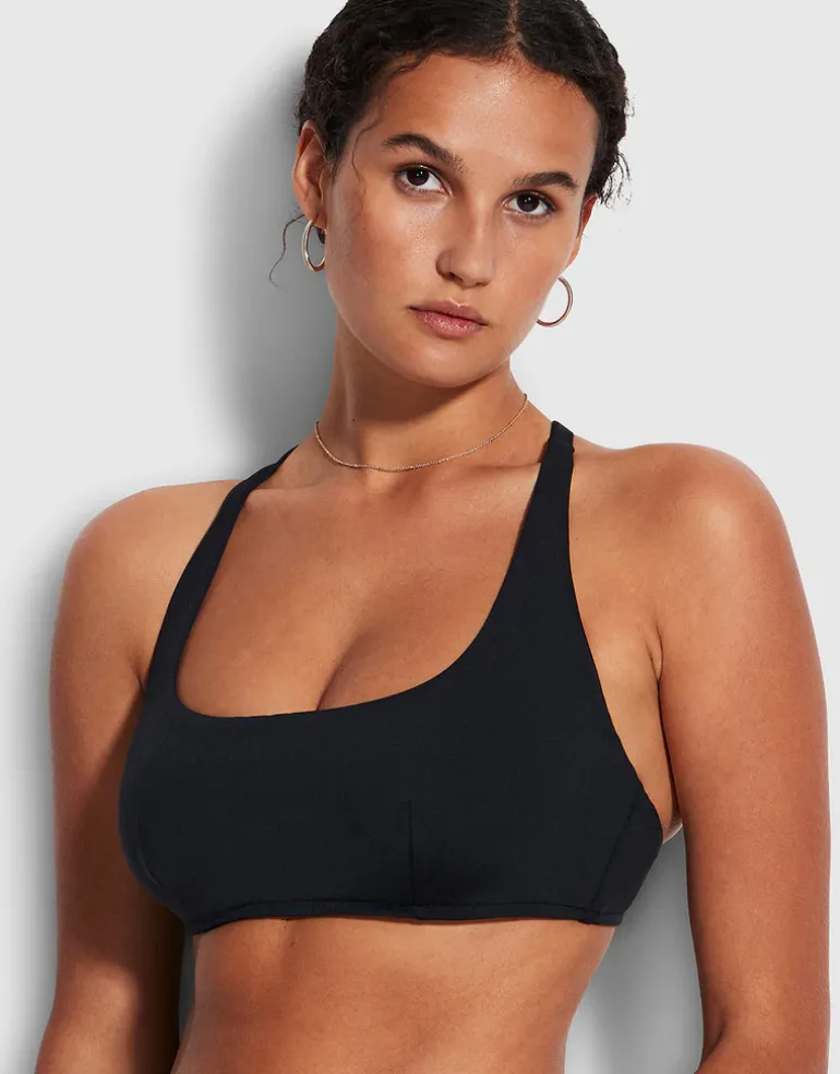 The DD Scoop Neck halter bikini top from the Collective range by Seafolly is a great top for larger busts. With hidden mesh and underwire, and side boning for shape and support, the back straps are adjustable and convertible so they can be worn straight over the shoulder or crossed at the back. There is also a multi-fit clip at the back so you can adjust the fit around the back too.