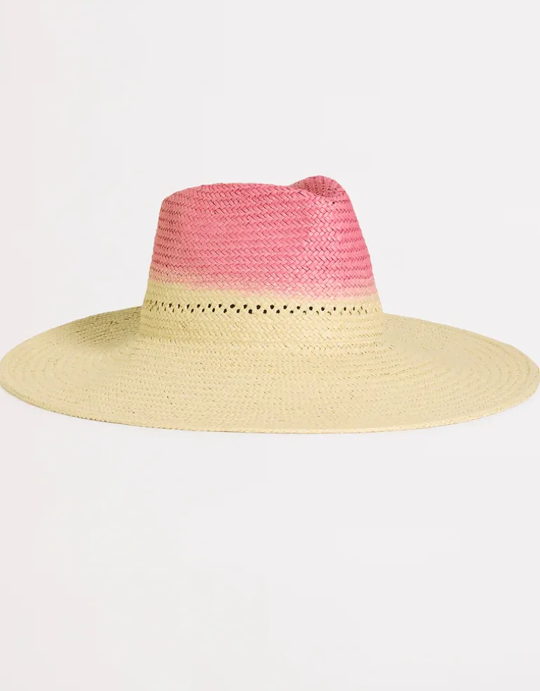 The Colour Crush Wide Brim hat from Seafolly is a lovely wide brim paper straw hat in natural colour but with a pale pink crown.