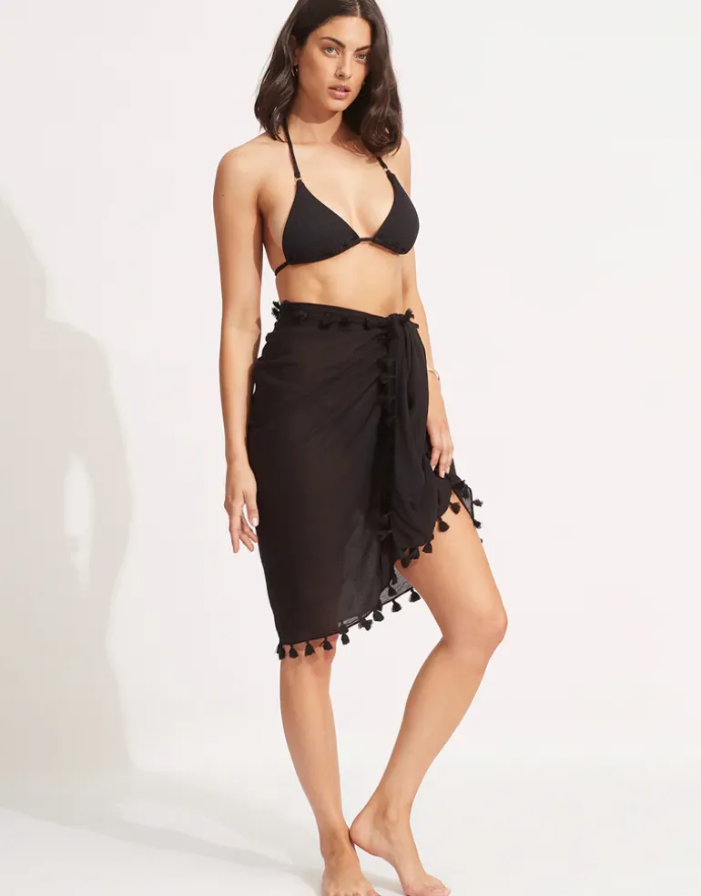 The Cotton Gauze sarong from Seafolly is a great cover-up to pair with any black swimwear. With a pretty tassel trim.