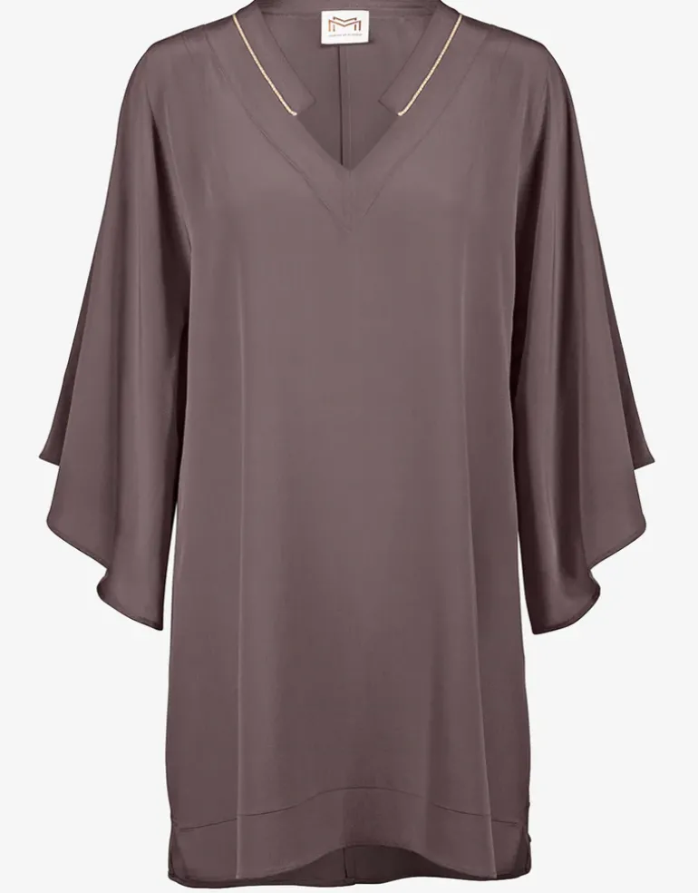 Beautiful soft Dance Tunic from Maryan Mehlhorn in dark taupe Stardust colour with gold metallic beaded collar.