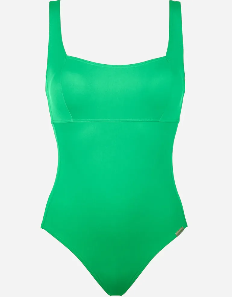 The Eco Shape Square Neck swimsuit from Lidea is a beautiful green square neck style with bust seams for shaping but otherwise no internal structure making it a lovely simple style perfect for swimming in. The Eco Shape range is made from 100% recycled nylon made from consumer waste. The shell fabric and sewing thread is made from recycled material as are the care label and logo. The latex-free rubber used is recyclable and the packaging is completely biodegradable.