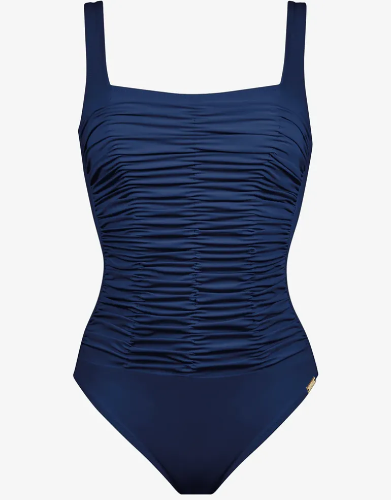 The Elements Square Neck swimsuit from Maryan Mehlhorn in a beautifully deep blue indigo colour is an elegant, square neck style with moulded foam cups, wide straps and flattering gathering over the front.