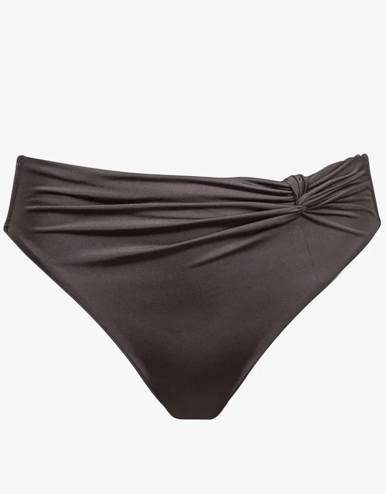 The Elevation Bikini pant from Maryan Mehlhorn is a beautiful Zinc coloured, full coverage bikini pant with gathers and a knot detail to one side.