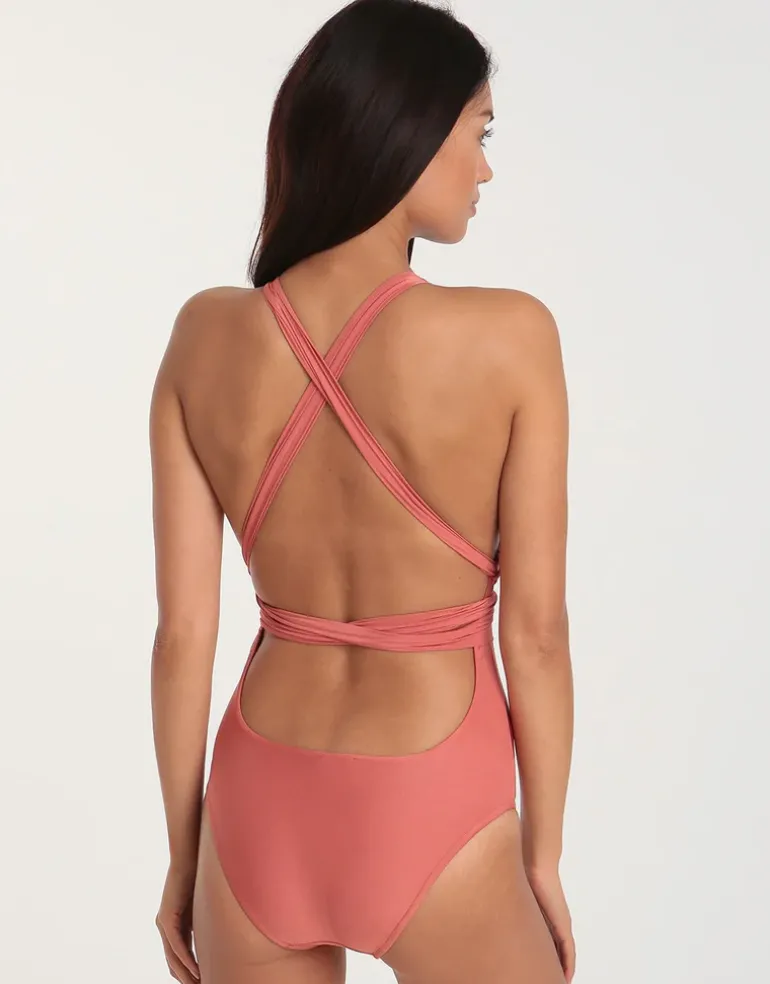 Style yourself in luxury with the Lenny Niemeyer Essential Touch Greek Maillot in a shimmery pink hue, designed with a flattering ruched bust. Extra-long neck ties are crossed over the back, wrapped around the waist and tied in a feminine bow for an elegant, shape-defining look.