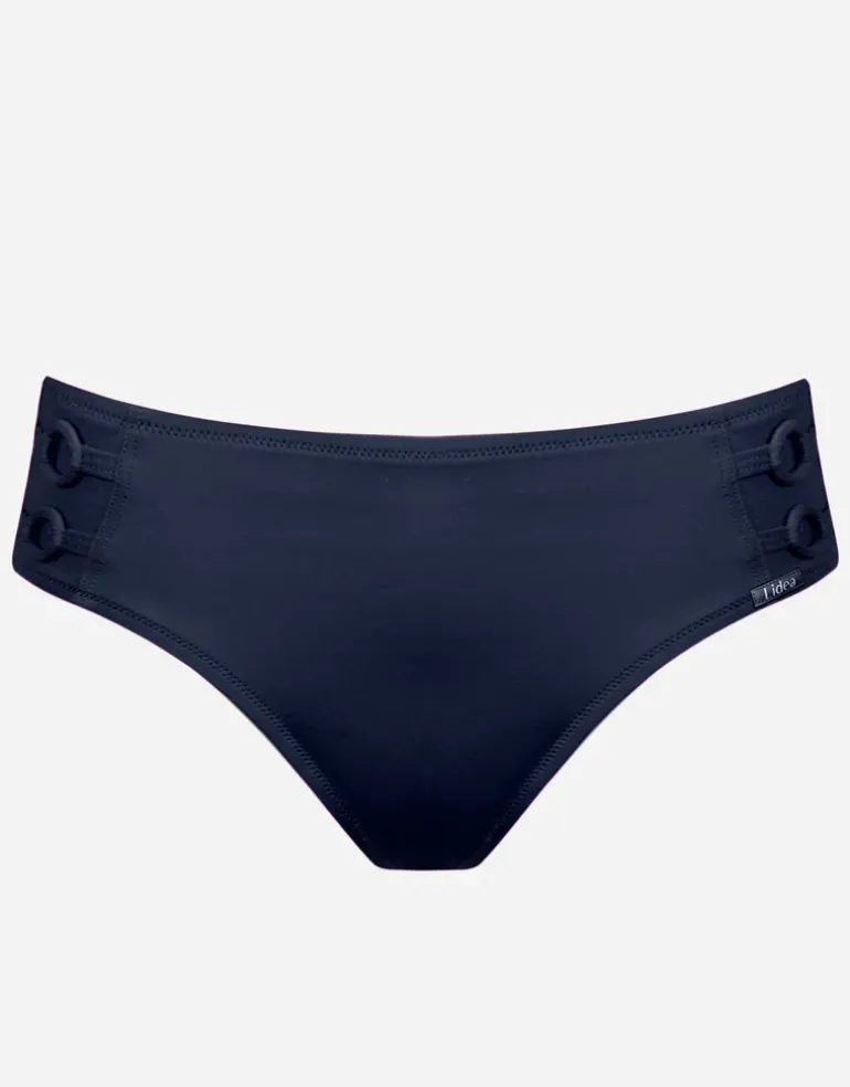 The Harmony Wide Side Ring bikini pant from Lidea is a hipster style with low but leg and wide sides featuring double ring detailing.