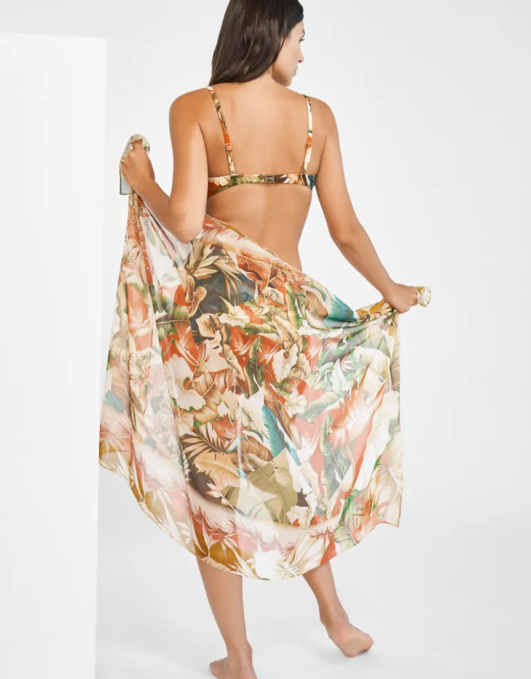 The Hypnotic Silk pareo from Maryan Mehlhorn is a lovely cover up in a warm topical foliage print.