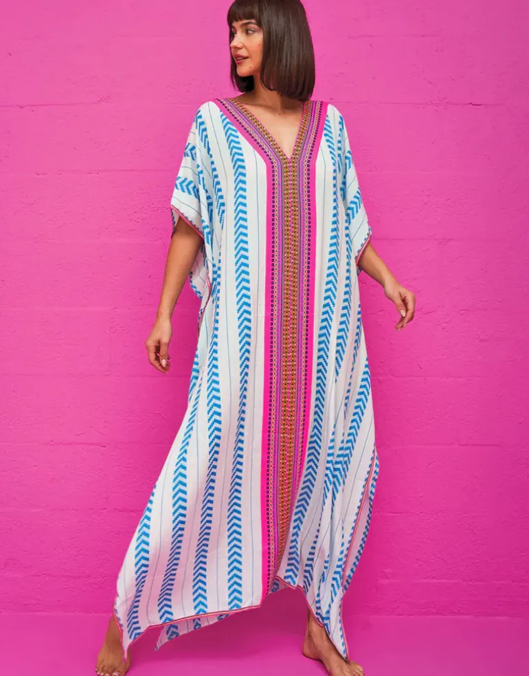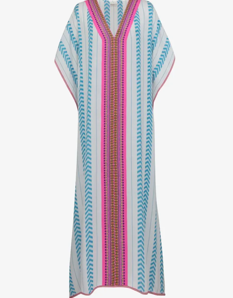 The Indian Thobe from Pitusa features a flattering deep v-neckline with Inca trim and loose sleeves. The drapey and delicate hand-loomed fabric from India feels ethereal and light, so much so that you will want to live in it! Available in Standard or Petite lengths. Choose Standard if you’re over 5ft 4in and Petite if you’re under.