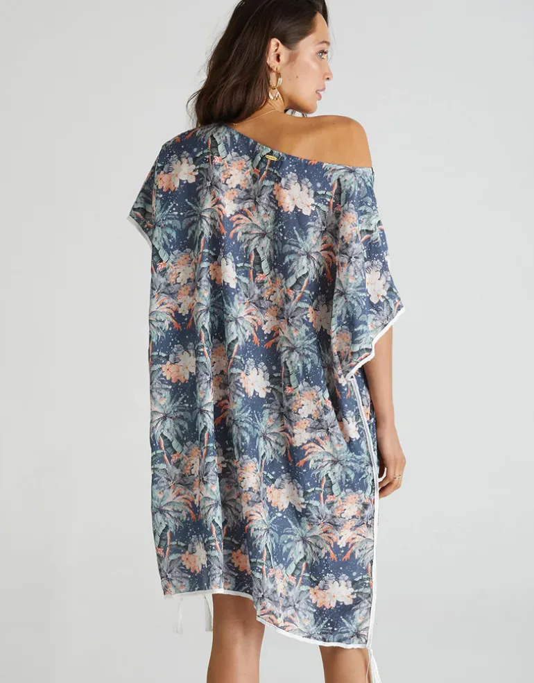 The Indianic Kaftan by Aqua Blu Australia is crafted from luxurious cotton-silk blend. Elevate your poolside style and pair with a statement earring and flats.
