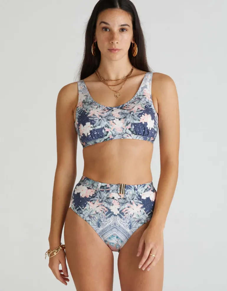 The Indianic Marilyn High Waist Pant by Aqua Blu Australia sits comfortably at the waist with a moderate to full cut at the back. At the waist is a gold belt accessory and the ultra-soft luxury fabric is designed to hug and shape the body.