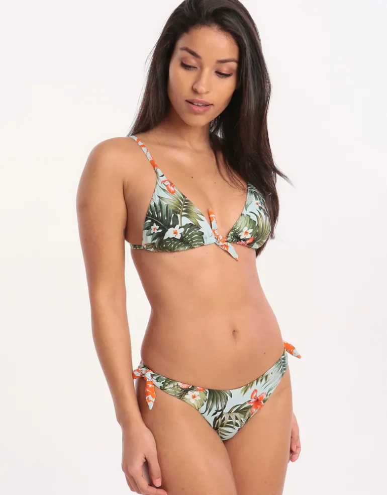 Lounge by the poolside wearing Banana Moon’s Iquitos Cleo Tri Bikini Top in an elegant floral print. Perfect for your tropical getaway, this bikini top has moulded padded removable cups and tie fastenings for the perfect adjustable fit.