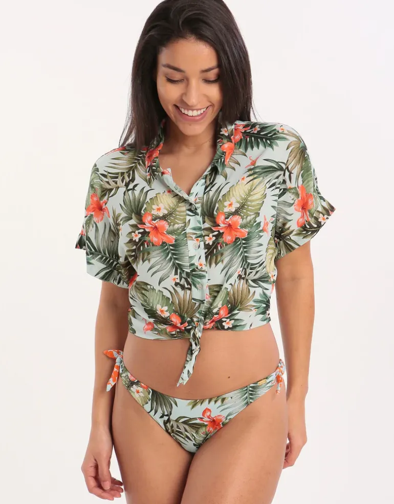 Get ready for the day’s excursion wearing Banana Moon’s Iquitosvoil Kaimi Cropped Shirt in a tropical print. This shirt is great for keeping you cool and stylish on your travels.