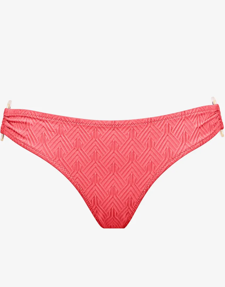 The Island Nostalgia Ring Side Hipster bikini pant from Watercult is made from a lovely textured fabric woven with an understated geometric Art Deco design. This hipster style pant has contrasting coloured square rings at the hips and moderate to full rear coverage.