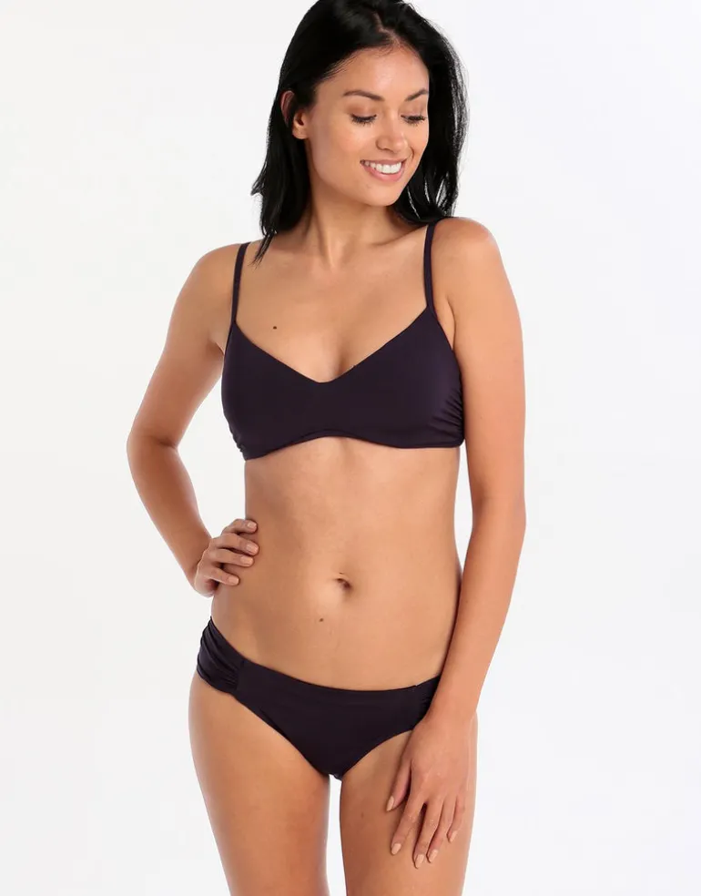 Opt for a flattering beach silhouette with the Jets Jetset Gathered Side Pant in a stylish deep shade of purple. This low rise bikini pant features gathered side panels that cover the hips for a flattering fit.