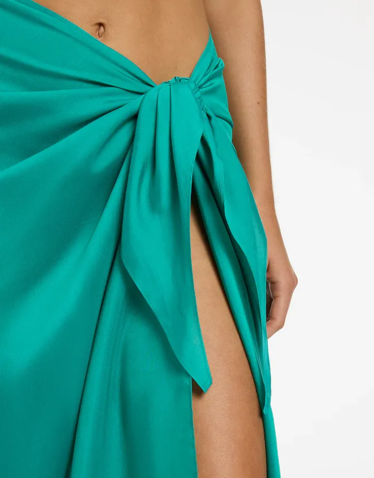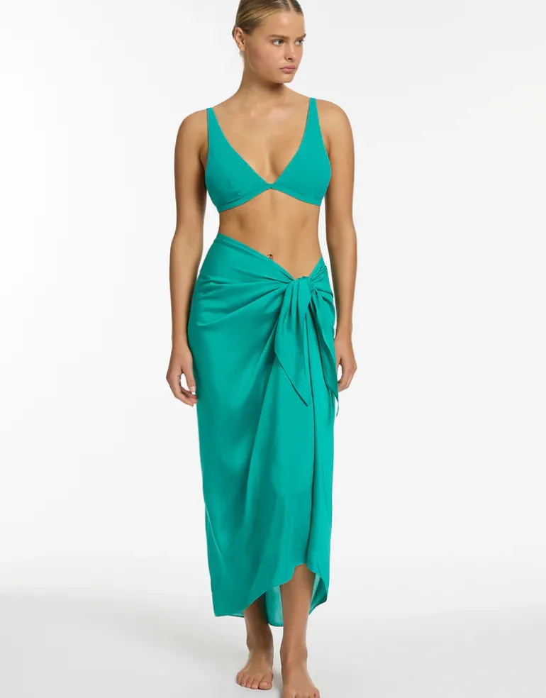 The Jetset Sarong from Jets is a lovely soft viscose silk mix style in Mineral green to match the Jetset Bandeau swimsuit from Jets.