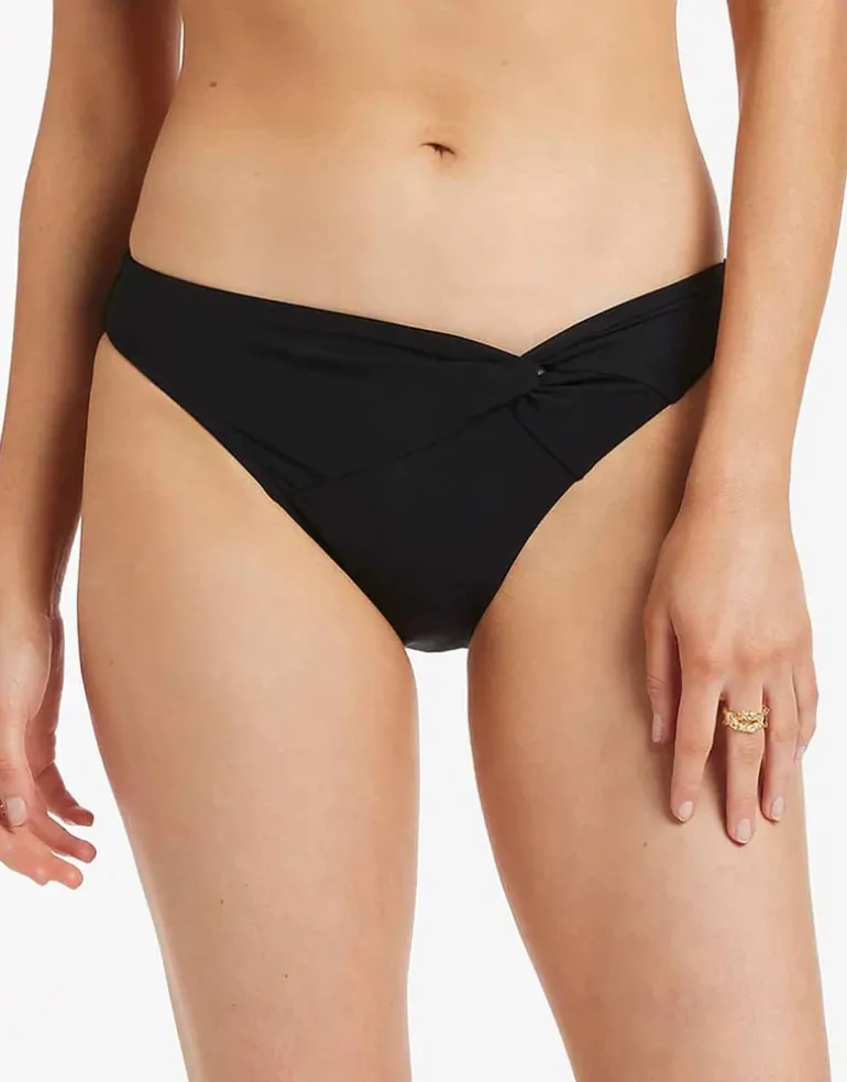 The Jetset Twist Front bikini pant in Black from Jets is a moderate coverage classic fit pant with looped though twist detail at the front.