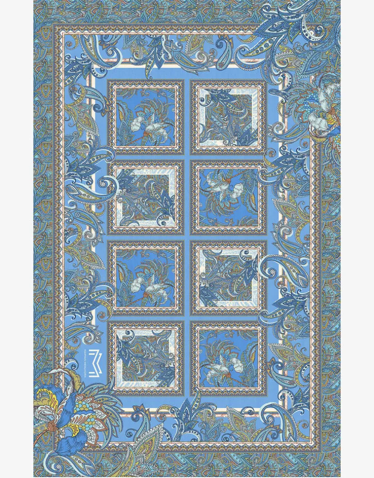 The Majorelle Pareo from Maryan Mehlhorn has been made in a soft blue paisley silk to complement the Majorelle swimwear collection.