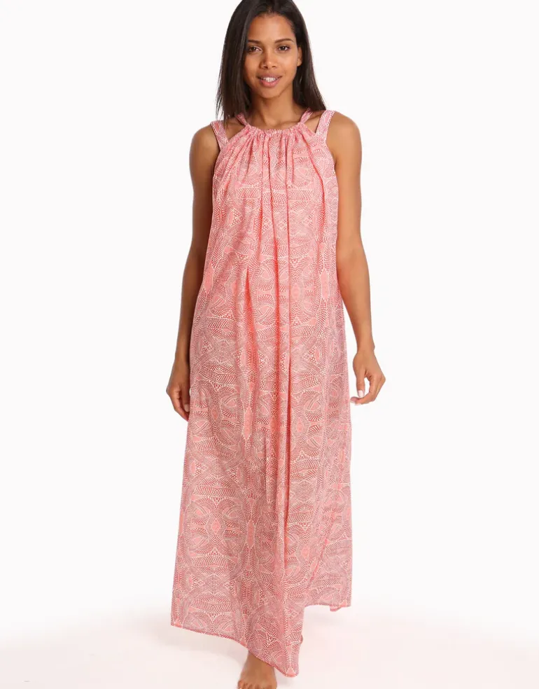 This Paolita Malika Cotton Maxi Beach Dress features a long tie that is threaded through the neckline through to the back where it can be tied in different ways for a customisable look, allowing you to wear it as a loosely fitted beach maxi by day, then as an elegant fitted maxi by night!
