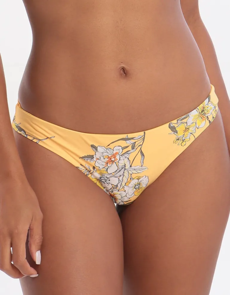 This reversible Seafolly Mid Summer Brazilian Bikini Bottom with small rear coverage features a dainty floral print on one side, and solid buttercup yellow on the other for two statement summer looks in one.