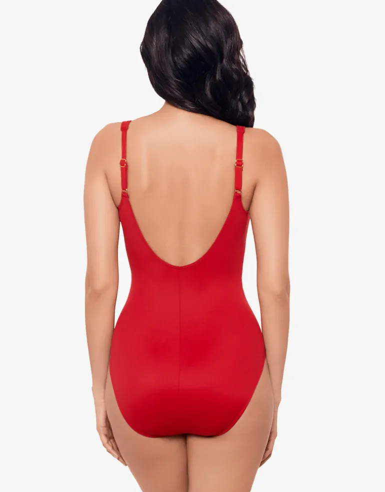 The Must Haves Sanibel swimsuit from Miraclesuit in beautiful Cayenne Red is the classic and ever popular Sanibel shape, with underwire and adjustable straps, this is an elegant looking swimsuit with a great fit.