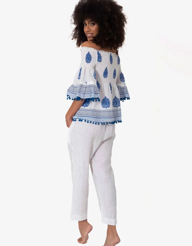 A pull-on style with straight, cropped legs, the white Naomi trousers from Iconique are woven from cotton and linen blend for airy comfort. Wear yours at the beach and beyond.