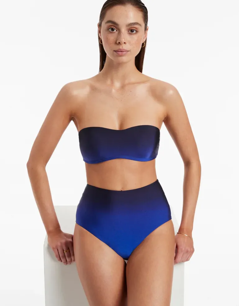 The Oia Sunset High Waist bikini pant from Jets is a super full coverage, high waist bikini pant in this gorgeous ombre print.