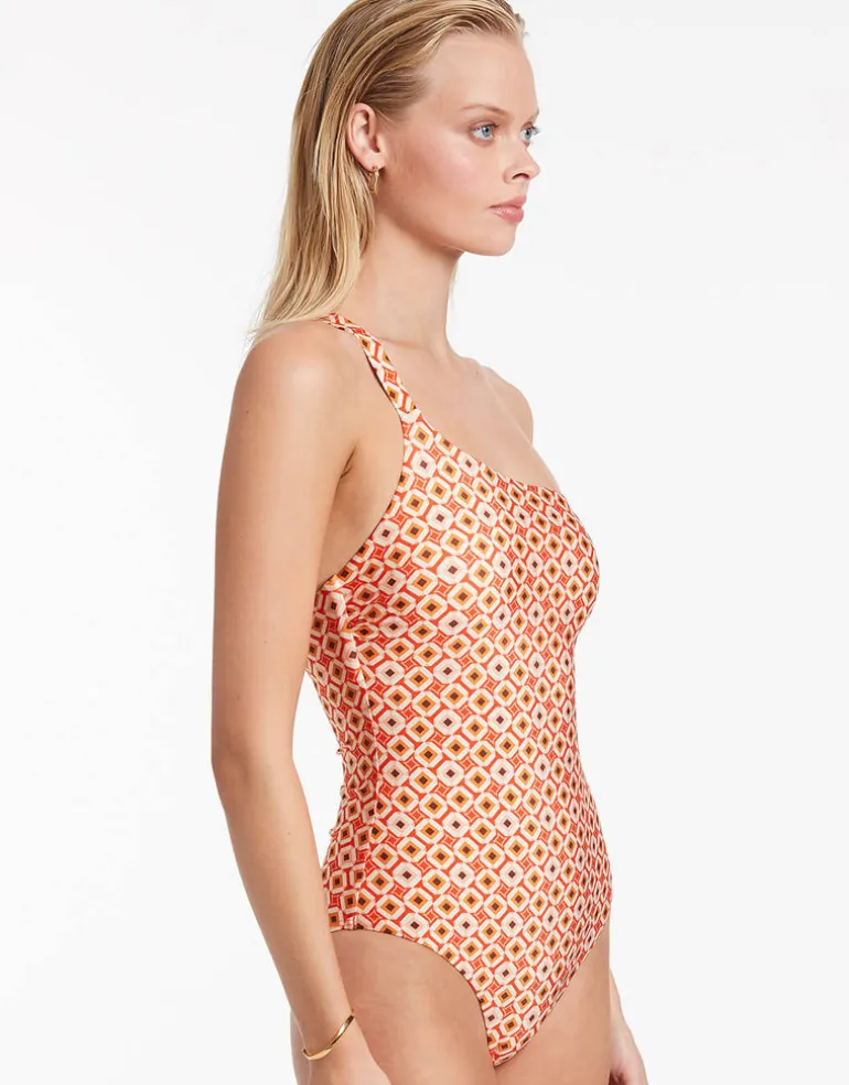The Playa One Shoulder swimsuit from Jets is a lovely asymmetrical style with a narrow strap to one shoulder and shelf bra inside for support.