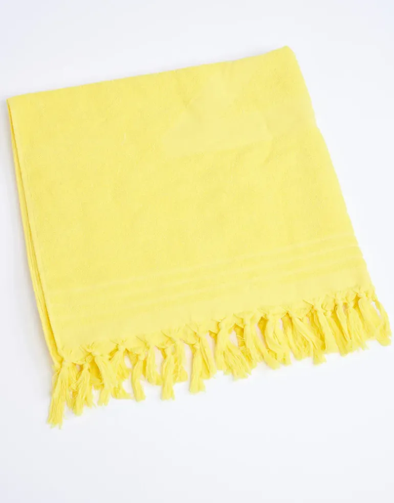 The Popsy Towel in Yellow from Banana Moon is a classic terry toweling towel in a Jacquard weave with Banana Moon woven into the design.