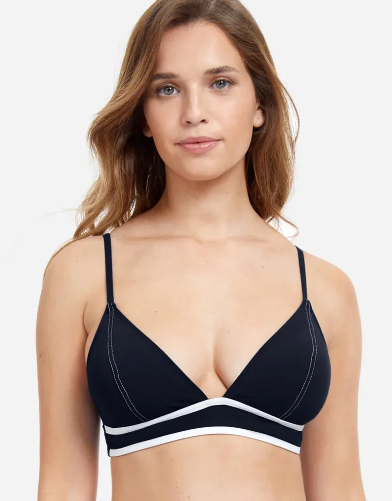 The California Girl bikini top from Profile by Gottex is a sporty black and white style with a supportive wide under bust band, soft padded cups and narrow adjustable straps.