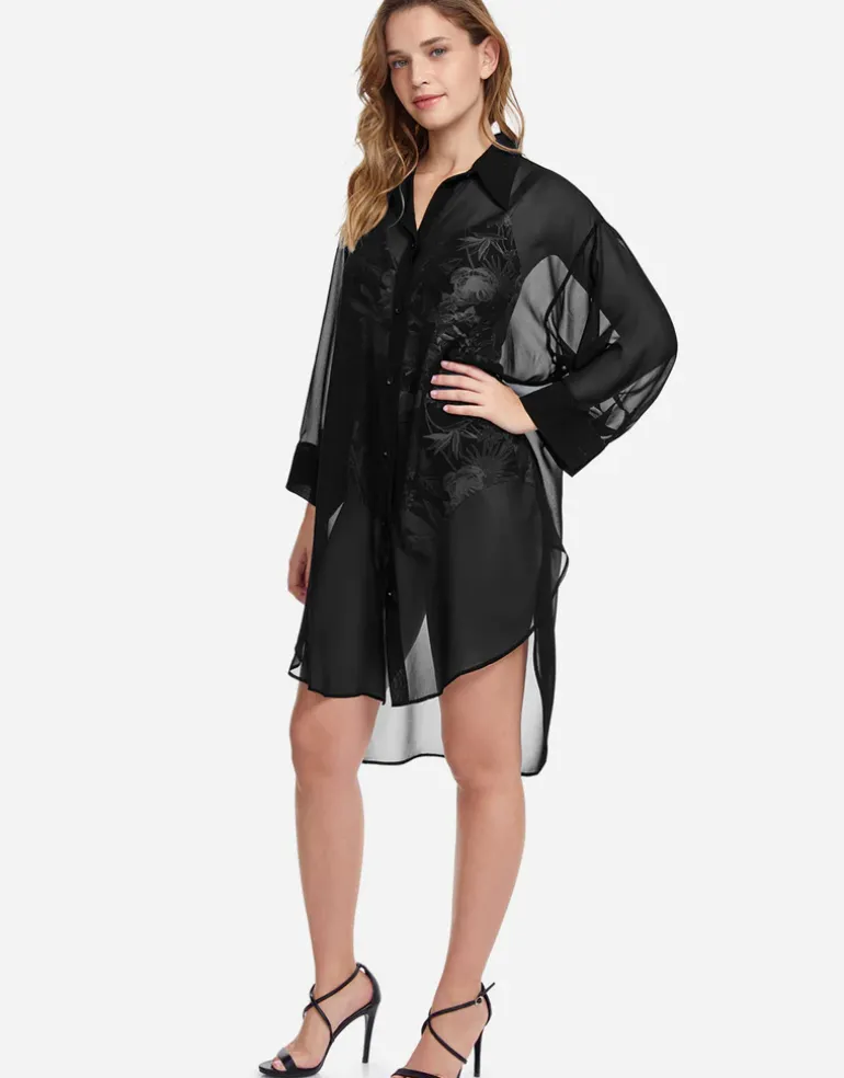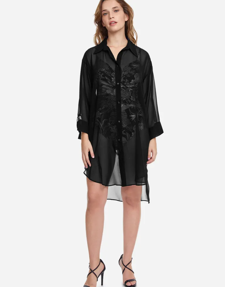The Tutti Frutti Beach Shirt from Profile by Gottex is a lightweight and sheet beach shirt with a button through front and a high low hemline, longer at the back.