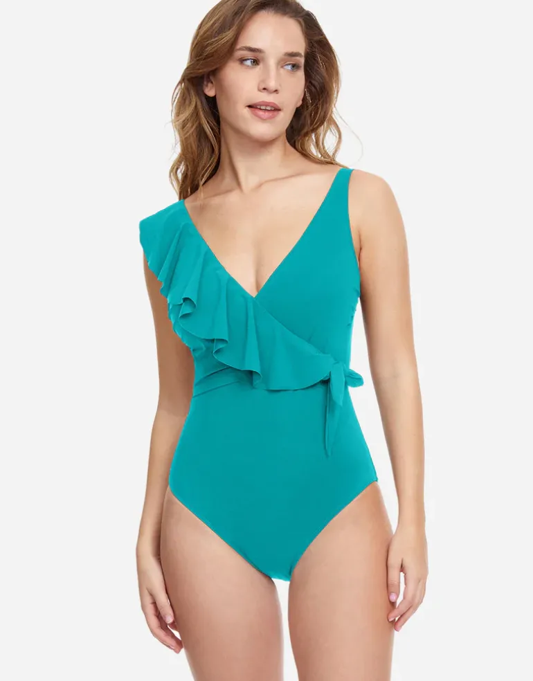 Profile Tutti Frutti Ruffle Surplice Swimsuit – Jade