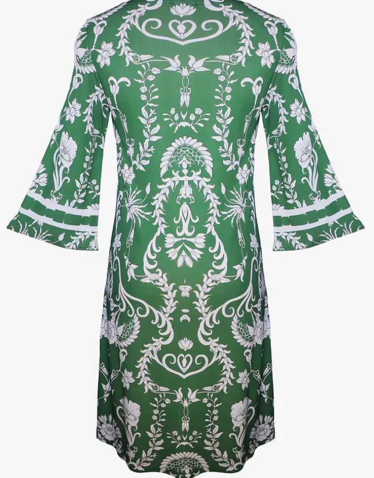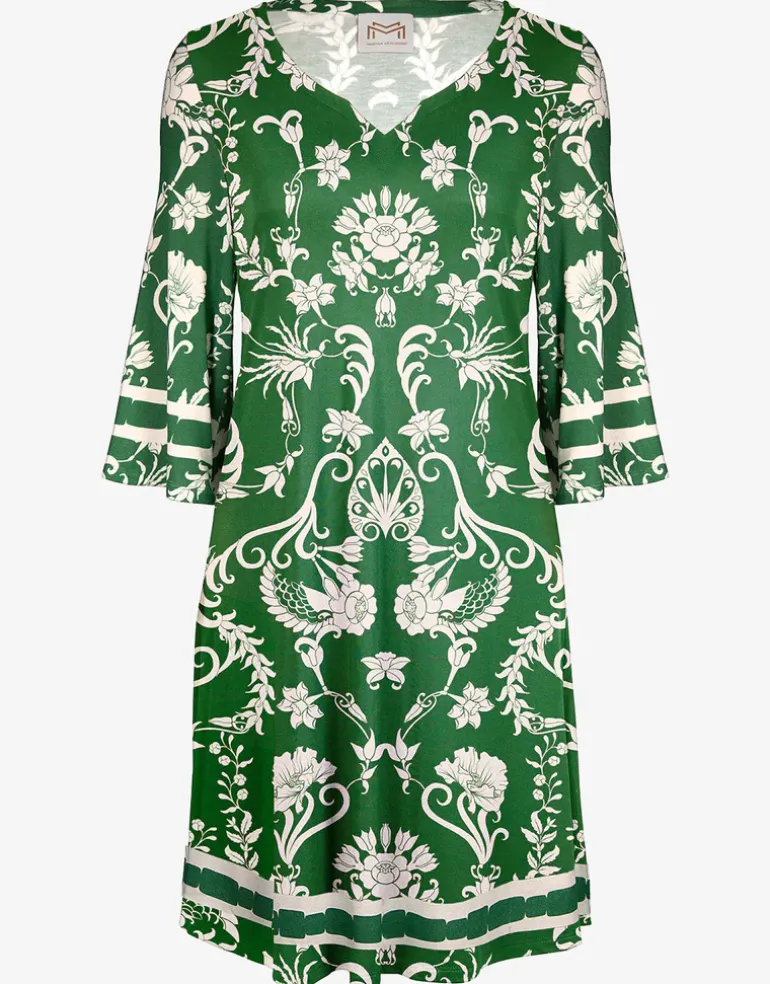 The Radiance tunic dress from Maryan Mehlhorn is a beautiful, loose-fitting, soft viscose knee-length dress with three-quarter sleeves and a round neck with a notch cut out at the neck.