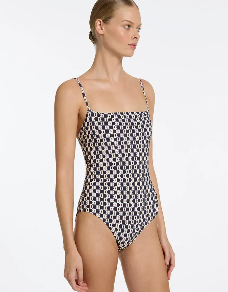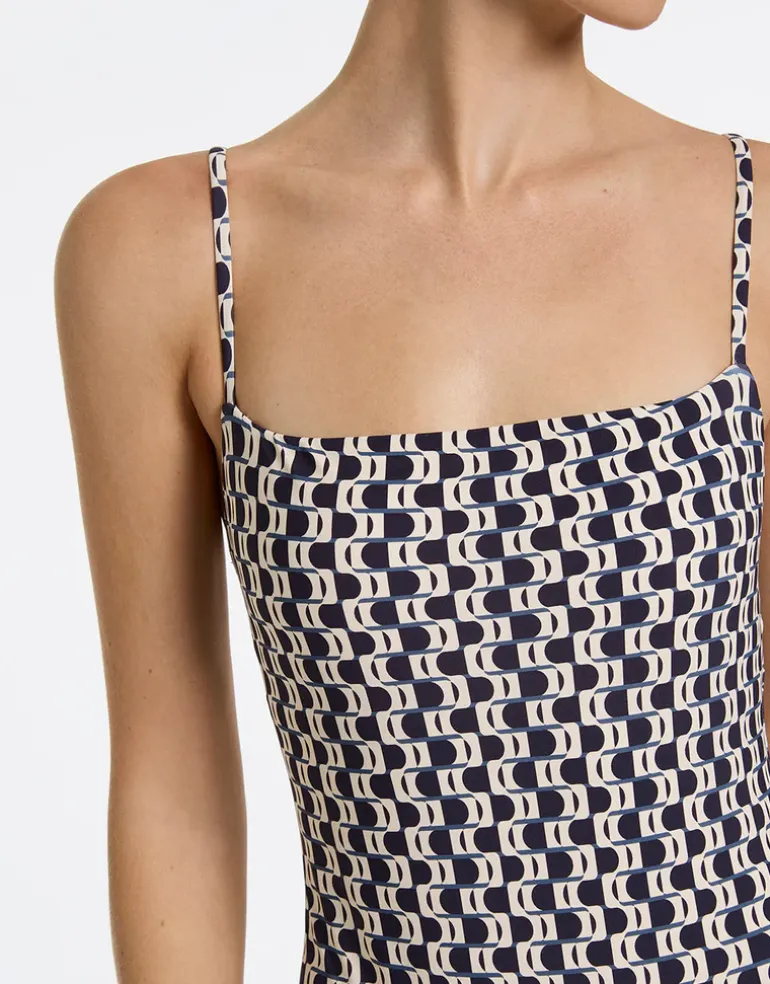 The Rio Minimal Tank swimsuit from Jets is a lovely abstract print style with a square neckline, narrow adjustable straps and removable cups.