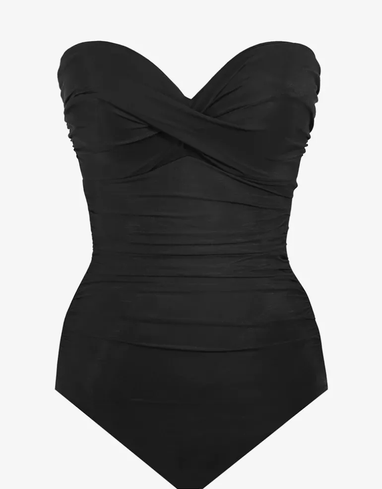 This Miraclesuit Rock Solid Madrid Swimsuit is a timeless poolside look with its sun-bathing friendly strapless cut, flattering ruching over the bust and tummy, and slimming tummy control for a smooth silhouette.